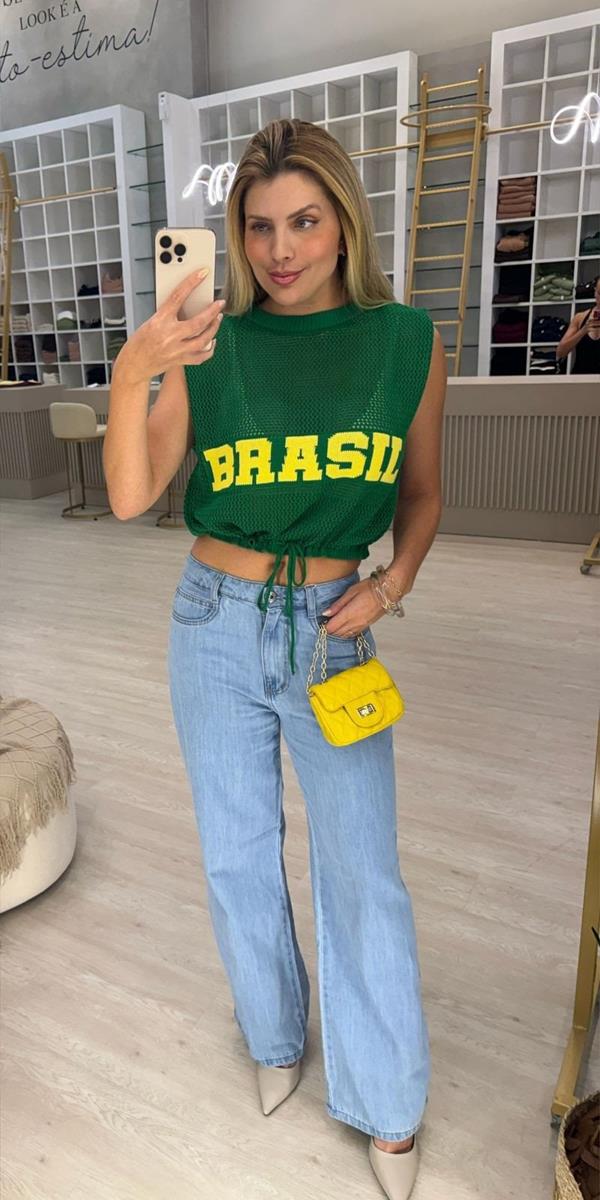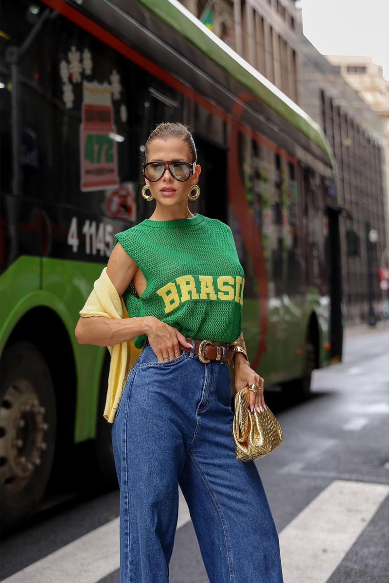 O Tricô Brasil Verde apresenta uma leitura sofisticada da tendência Brasil Core em tricô de linho, unindo frescor e refinamento em uma peça contemporânea.