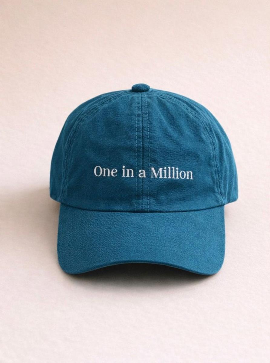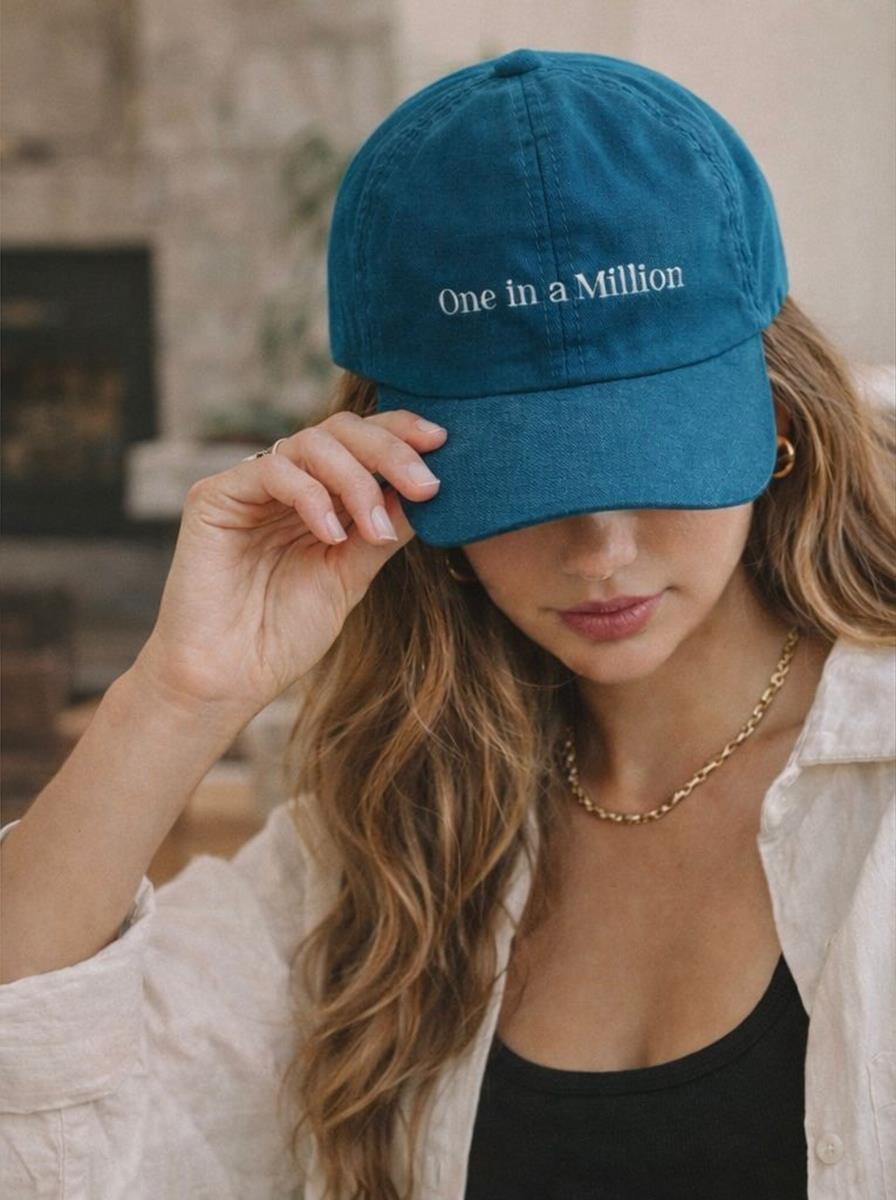 Com modelagem dad hat, copa macia e caimento natural, a peça foi pensada para oferecer conforto absoluto e uso contínuo. O bordado frontal One in a Million aparece de forma sutil e precisa, reforçando a mensagem de exclusividade que define a essência da marca. O tom azul petróleo, profundo e refinado, adiciona modernidade e atemporalidade, criando composições sofisticadas tanto em looks casuais quanto em propostas mais elaboradas.