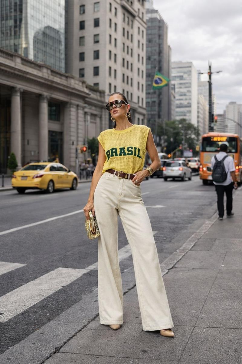 O Tricô Brasil Solar traduz a energia vibrante do Brasil em uma peça de estética refinada e contemporânea. Confeccionado em tricô de linho, revela uma textura naturalmente sofisticada, leve e respirável.