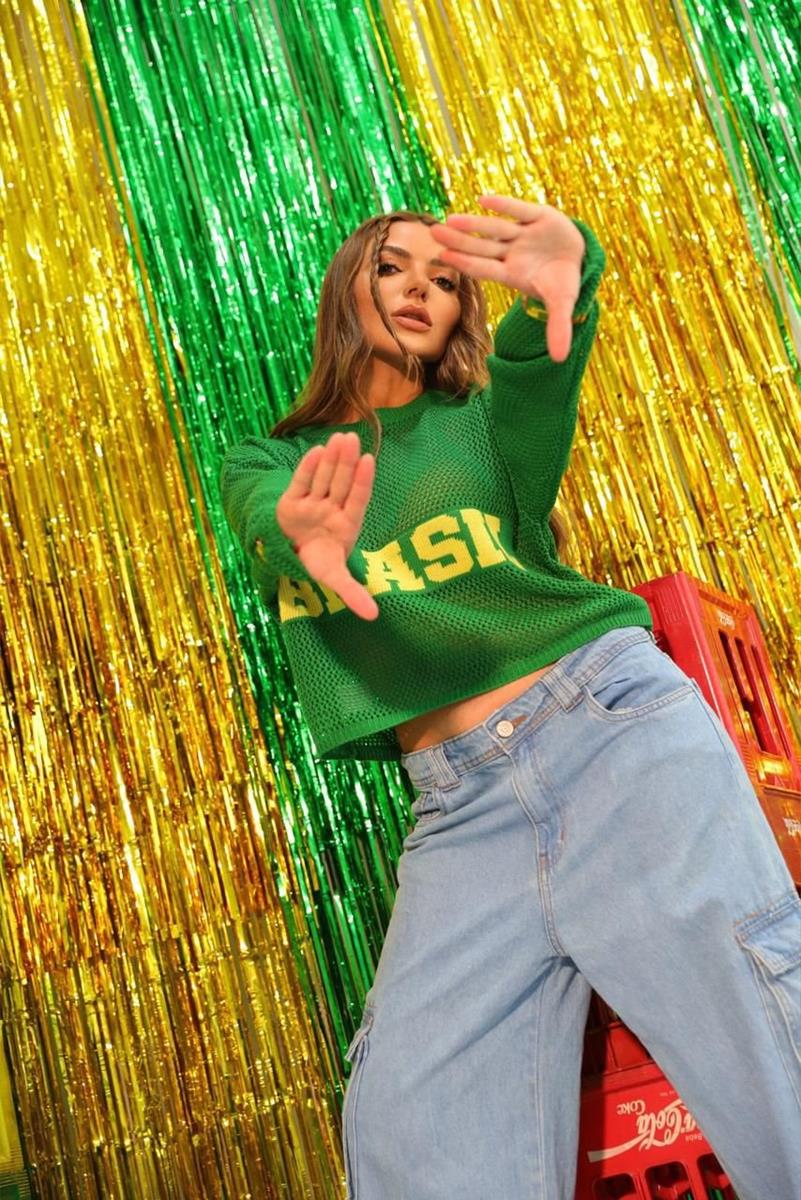 Tricô Brasil Verde em Linho Manga Longa Cropped